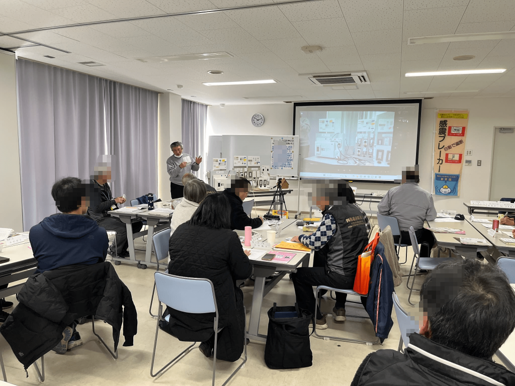 四街道市防災士連絡会の会員勉強会の講師として、当会の防災士(電気関係の有資格者でもあります)による感震ブレーカーの講座が開催されました。